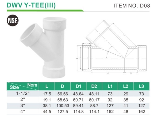 Produce a variety of high-quality products that can be customized plastic fittings pipe y tee pvc pipe fittings