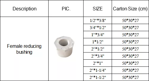 female reducing bushing pvc pipe and fitting plastic bushing