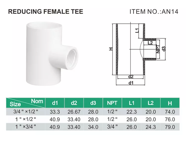 sam-uk Factory wholesale high quality PVC reducing female pipe tee